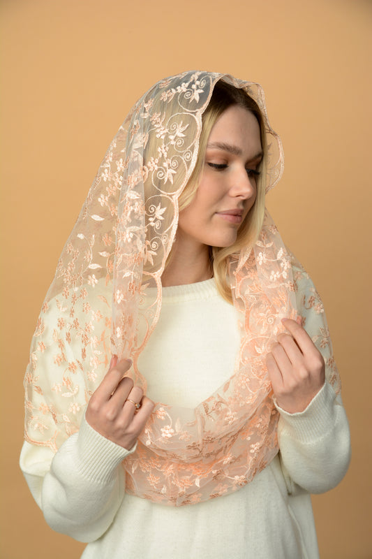 PEACH FLORAL MANTILLA