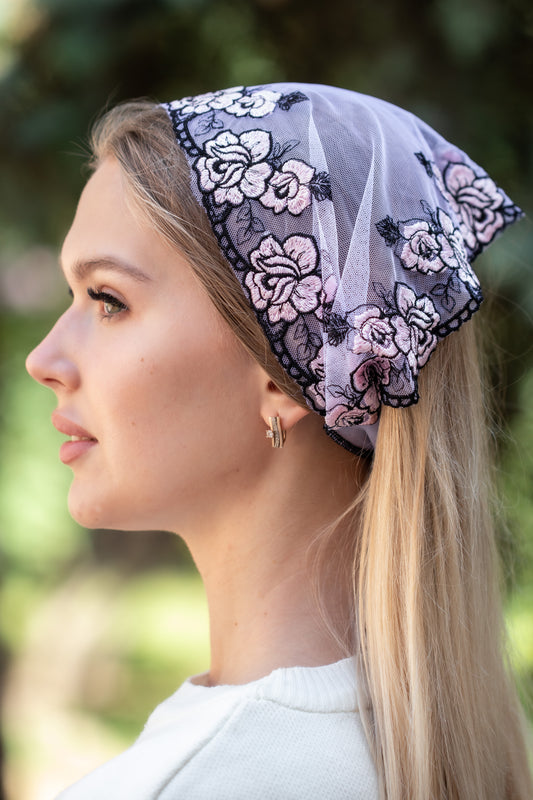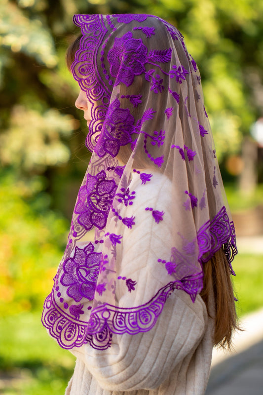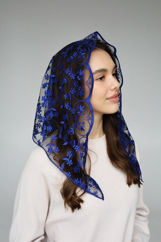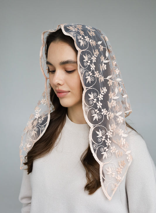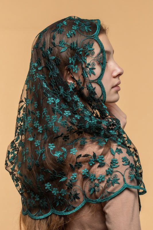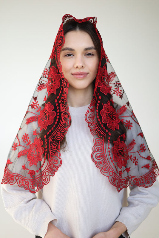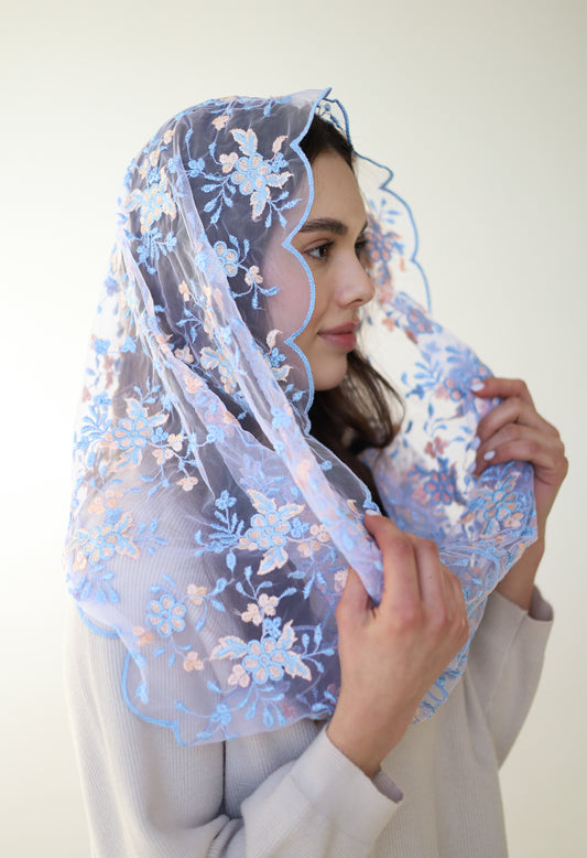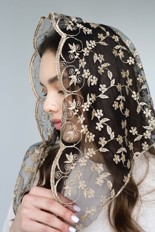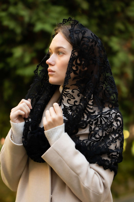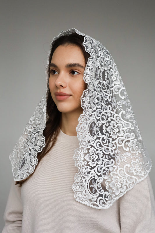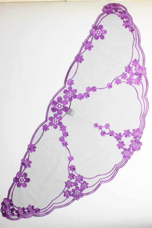 LONG GREY MANTILLA WITH 3D FLOWERS