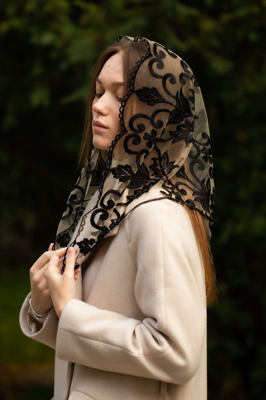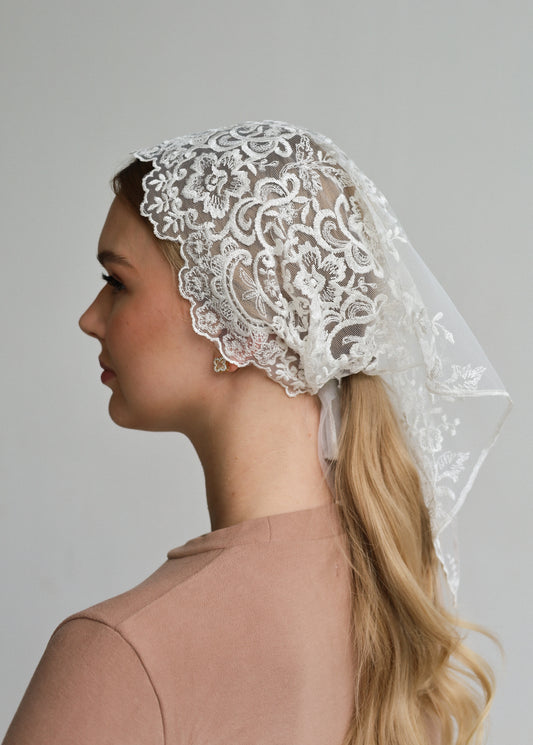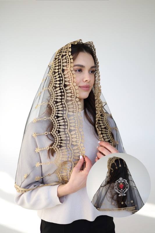 VEIL WITH SACRED HEART EMBROIDERY