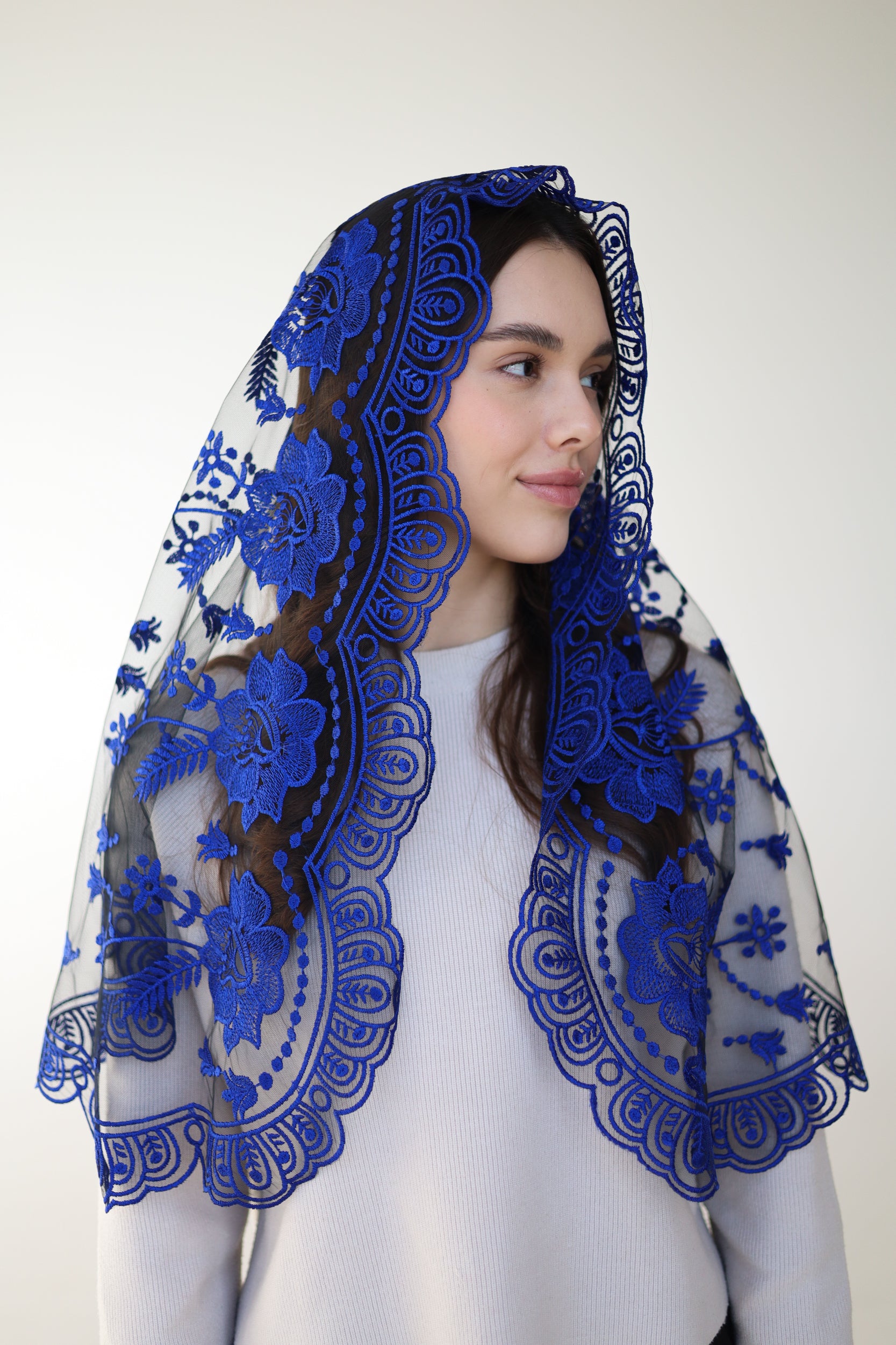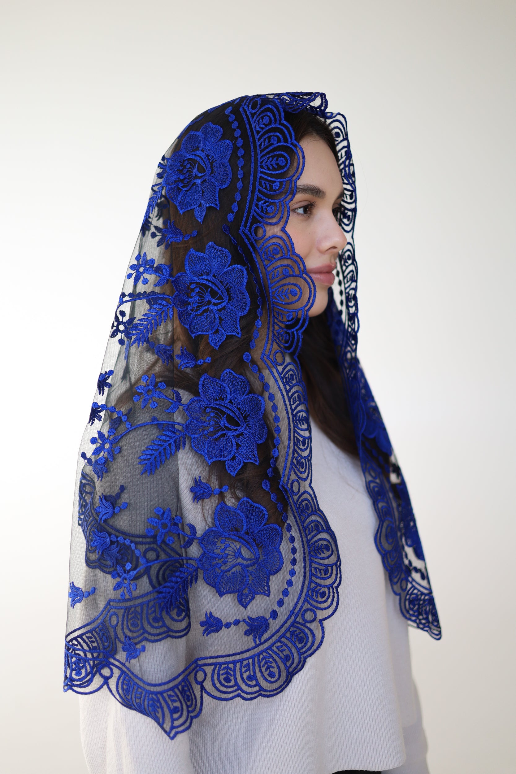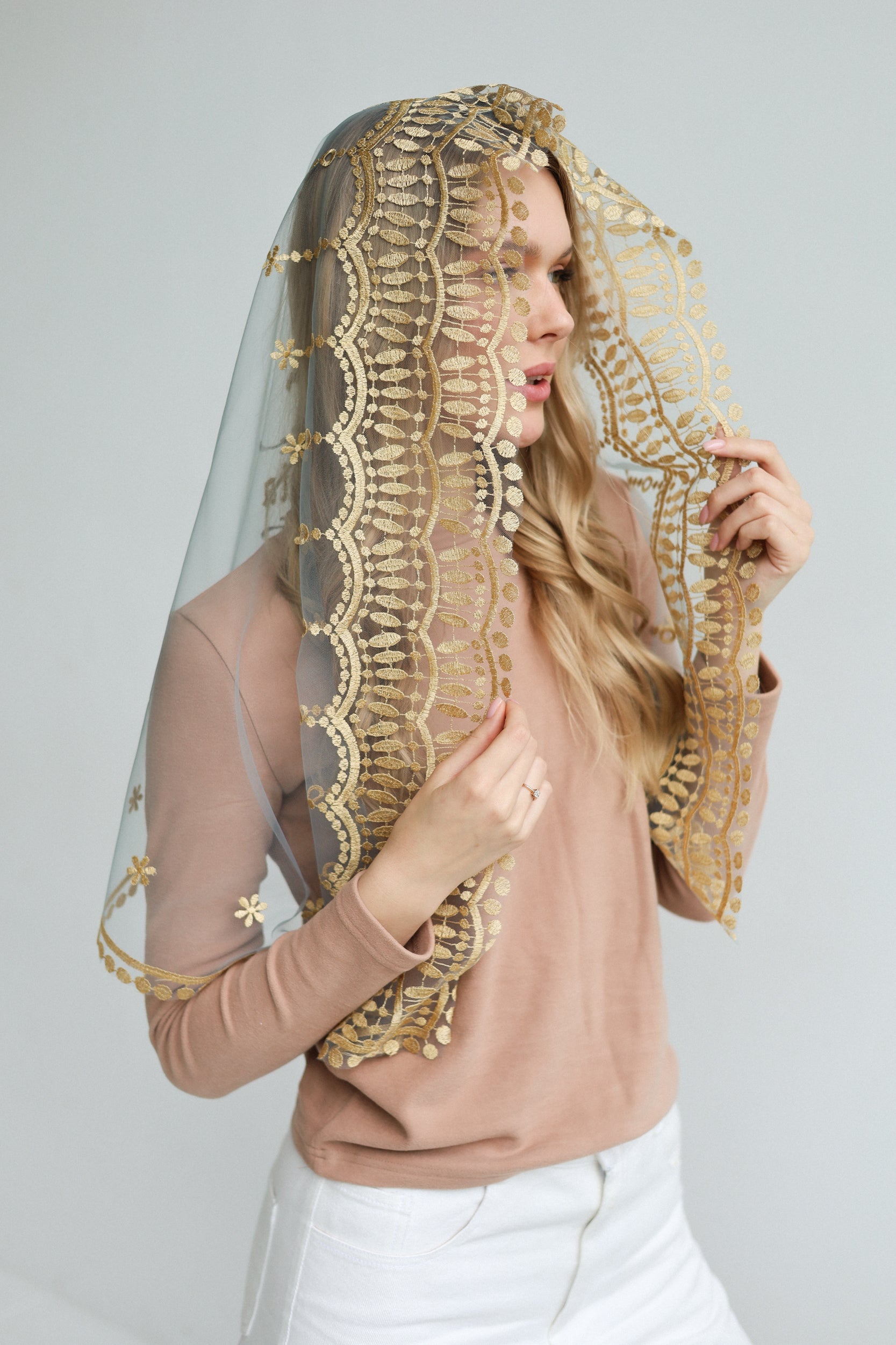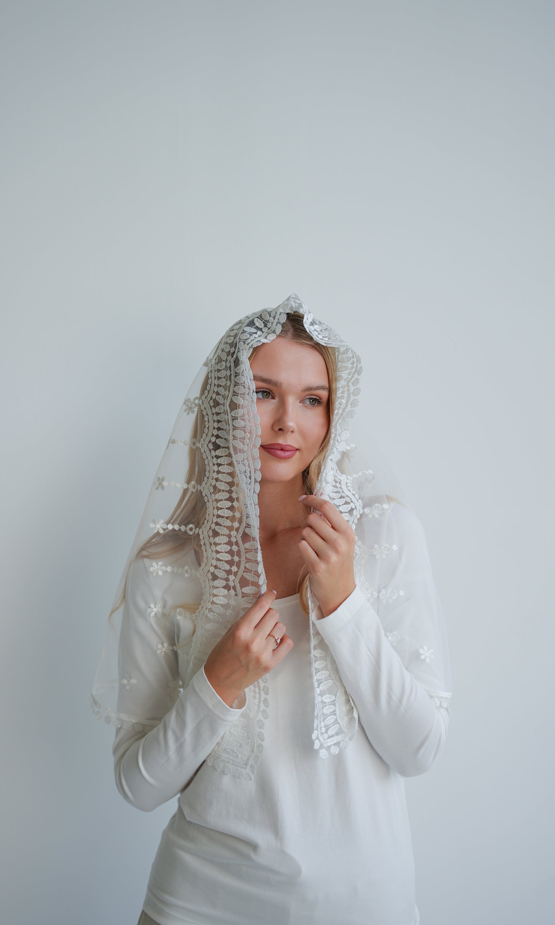 - Long Mantilla with fossil tulle & Ave Maria Embroidery