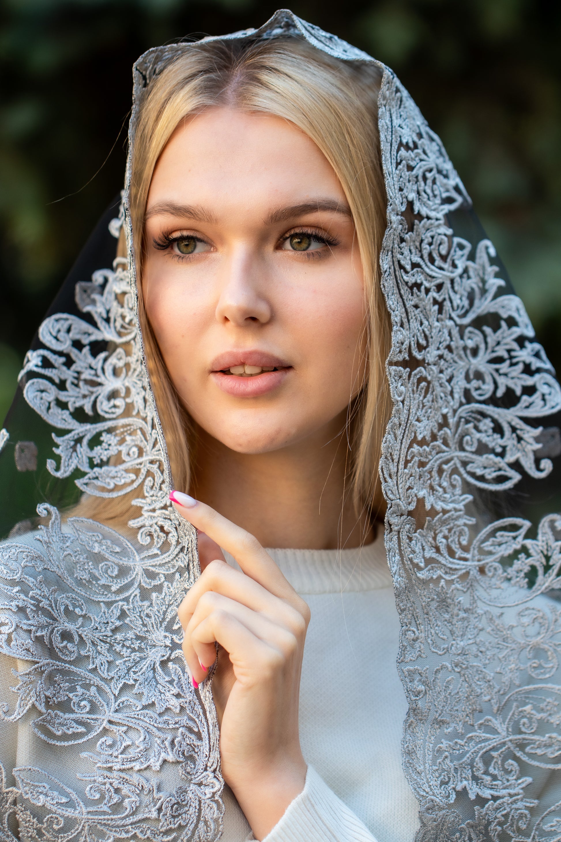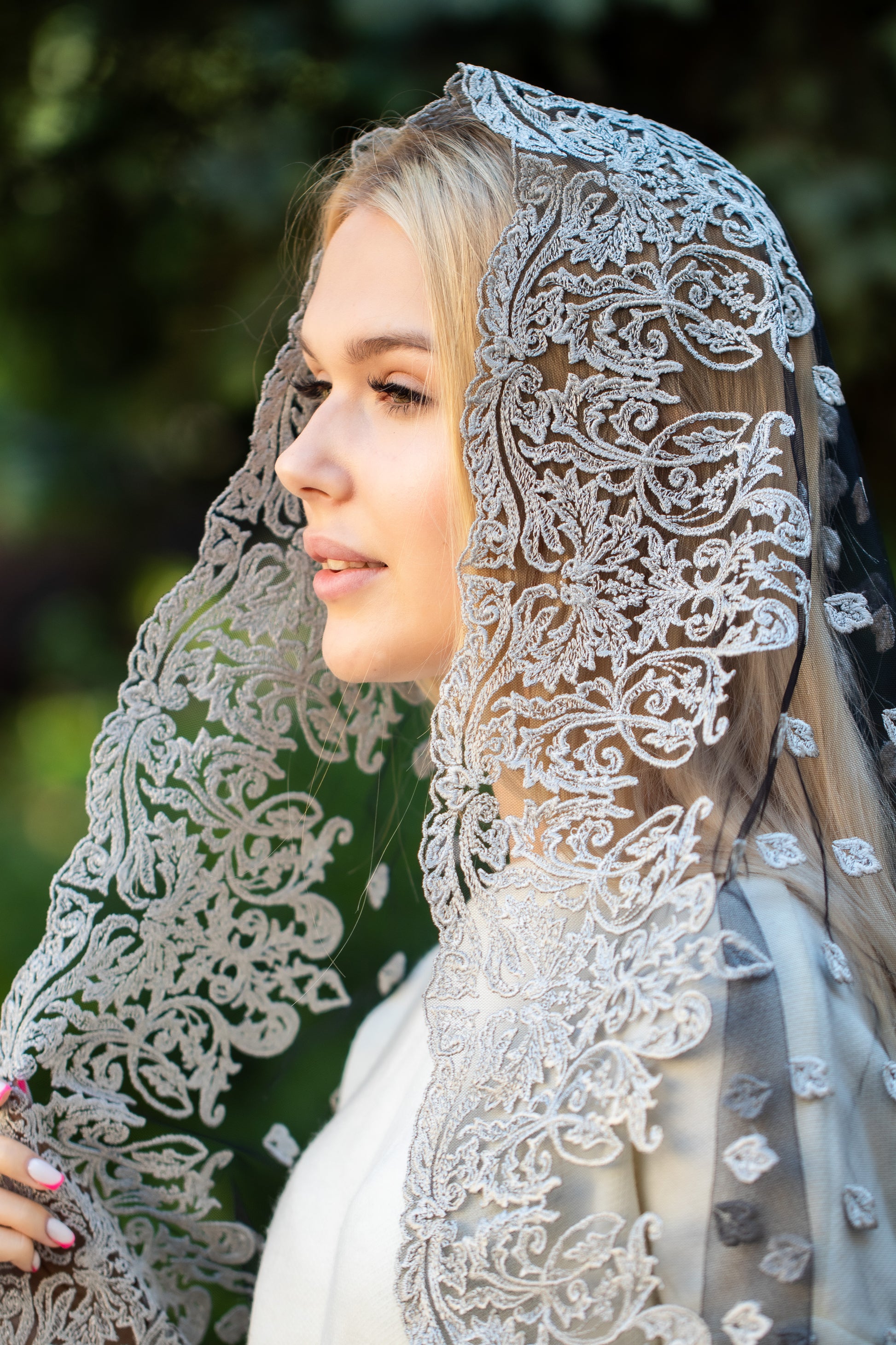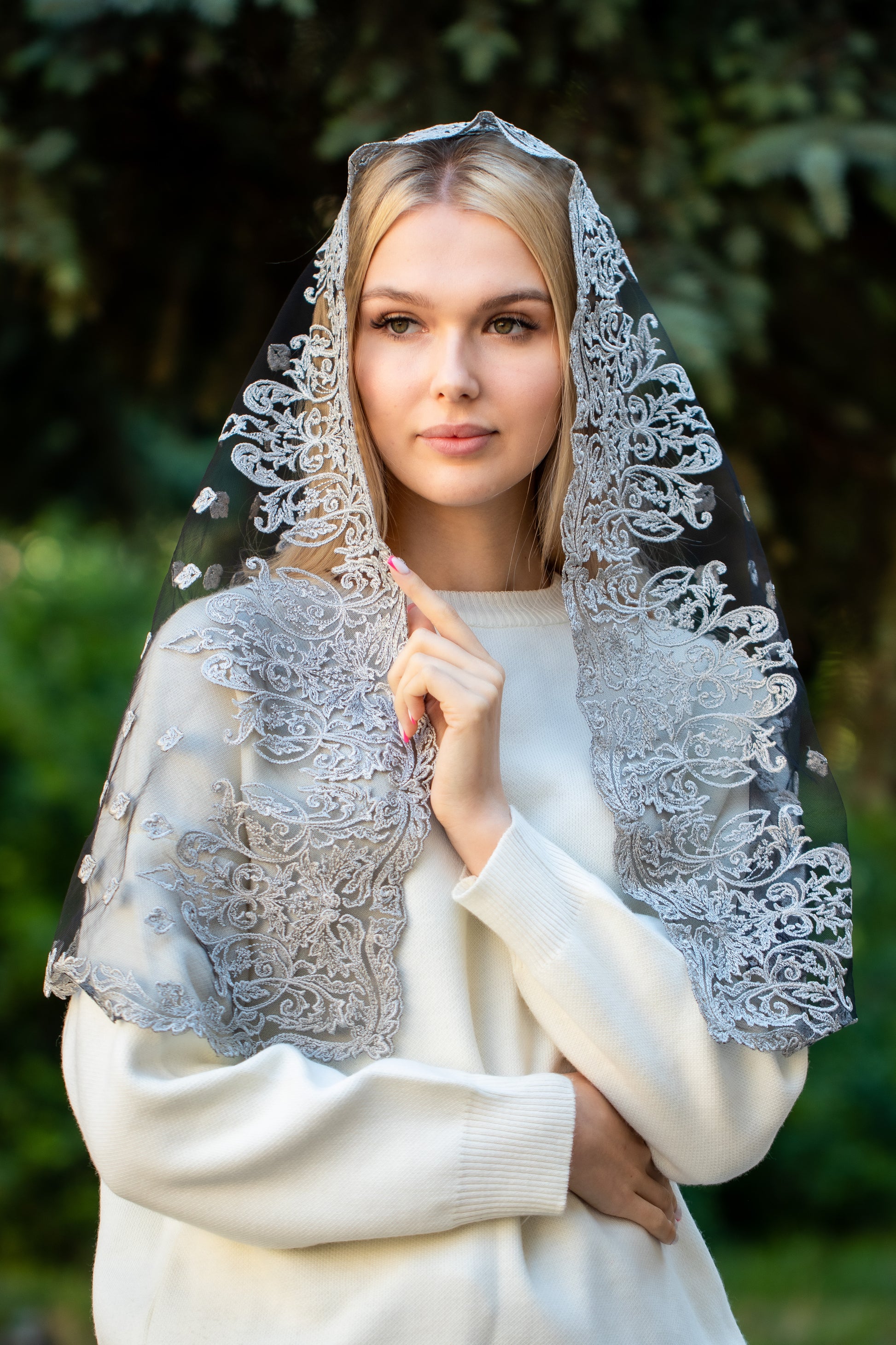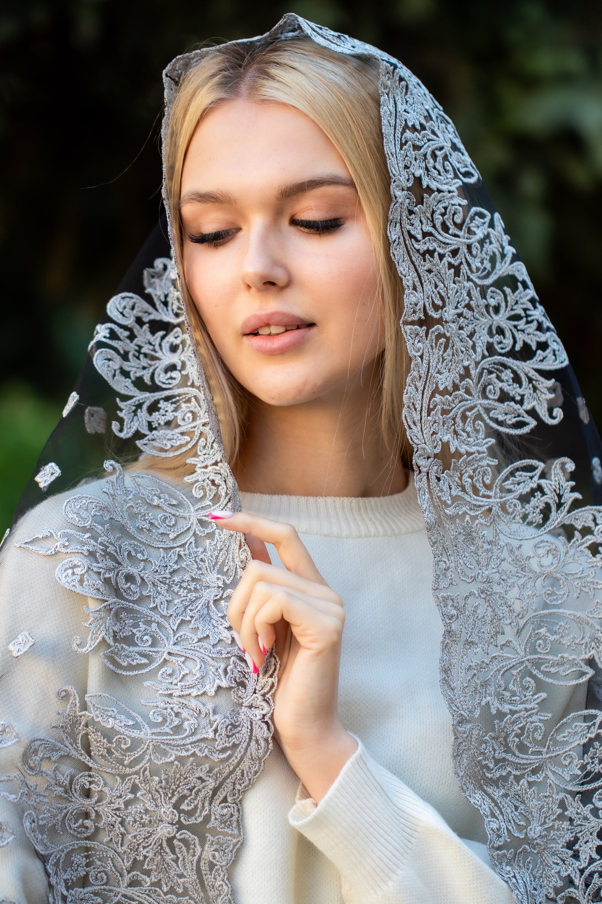 - Long grey Mantilla