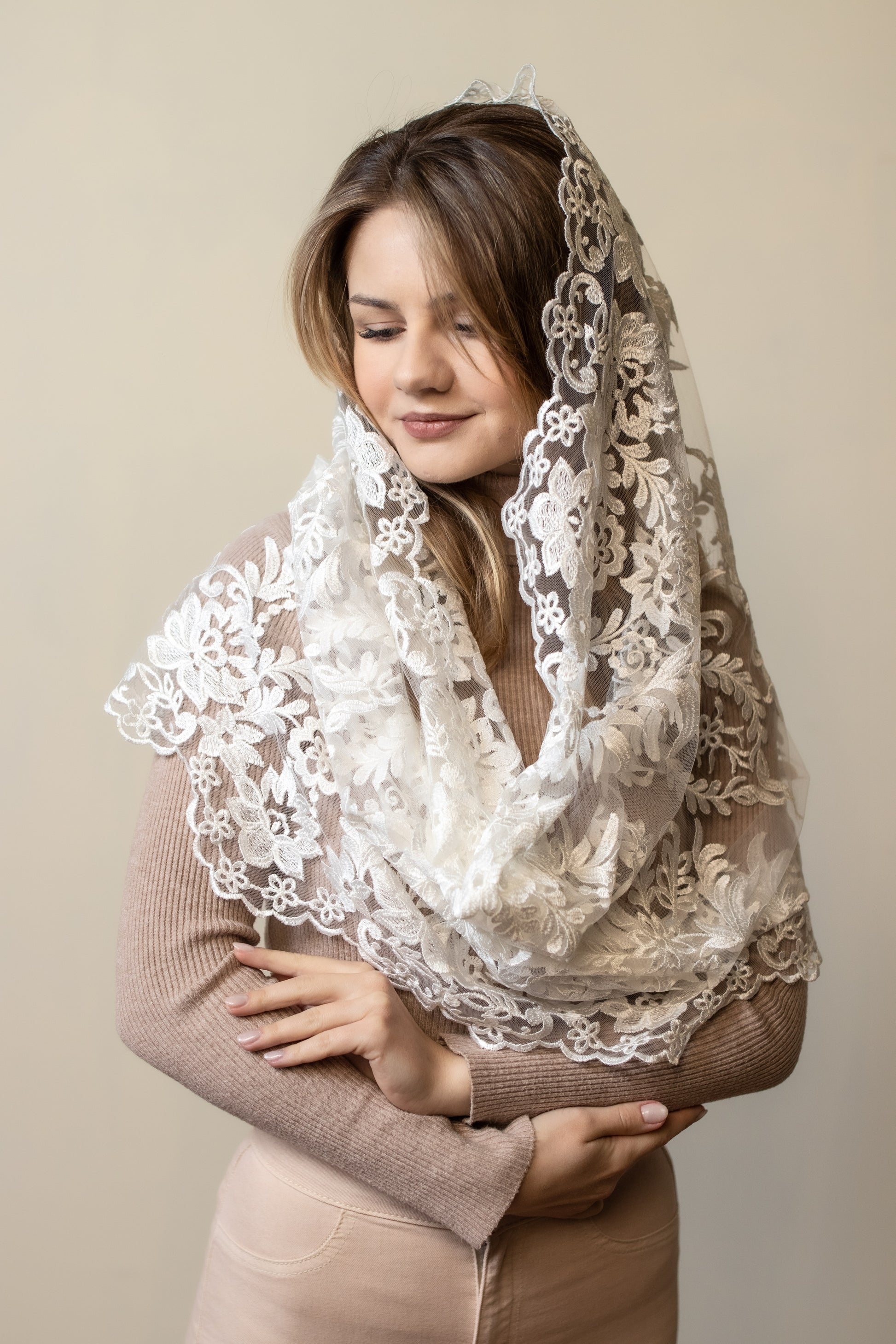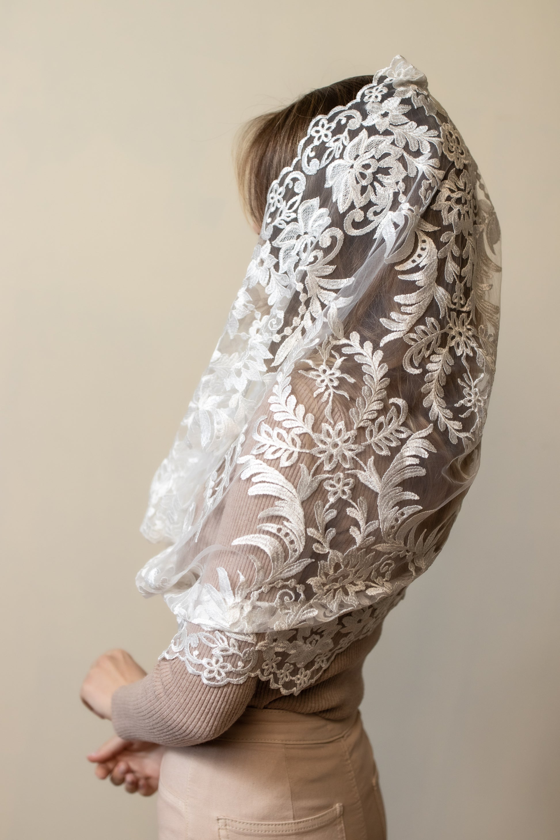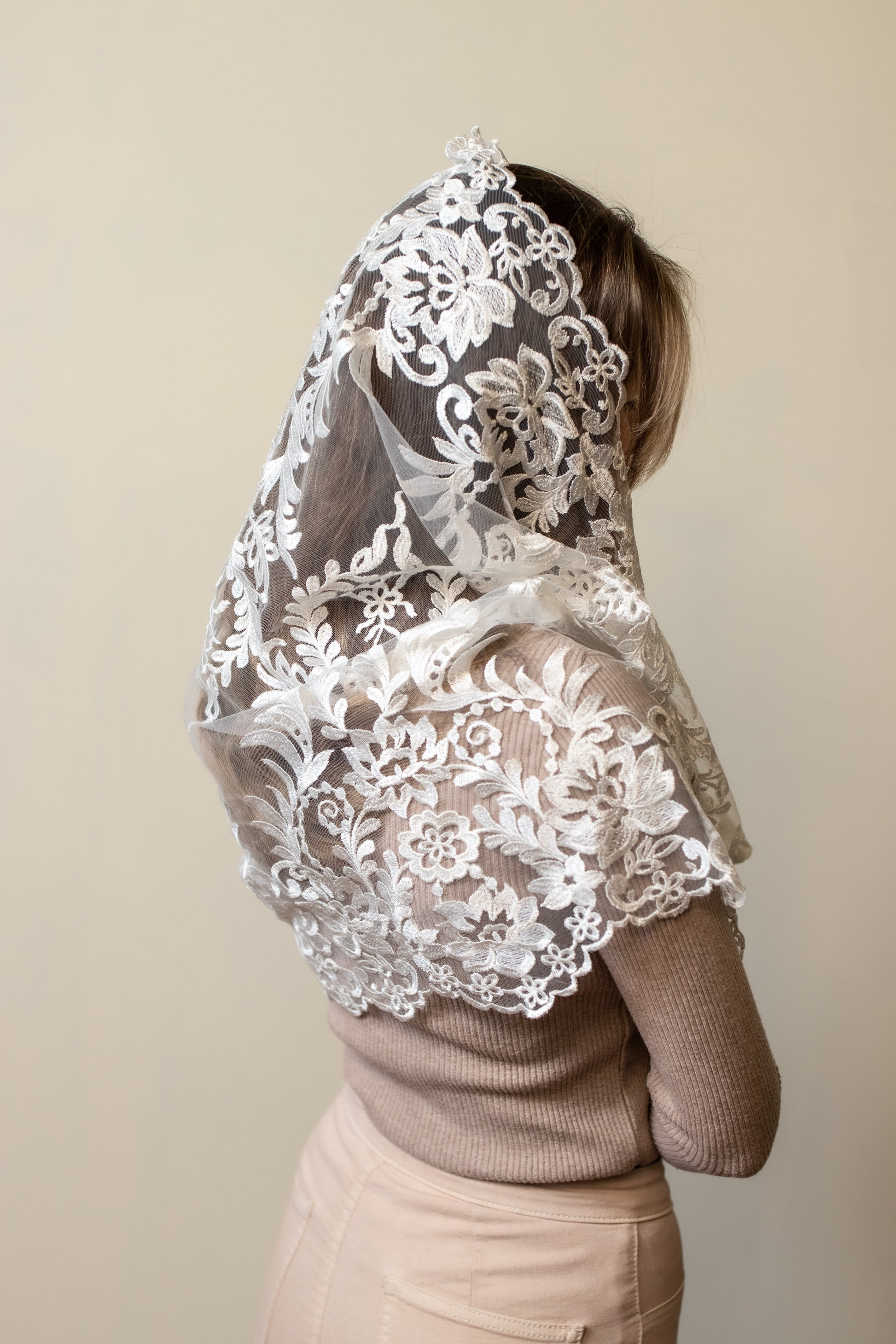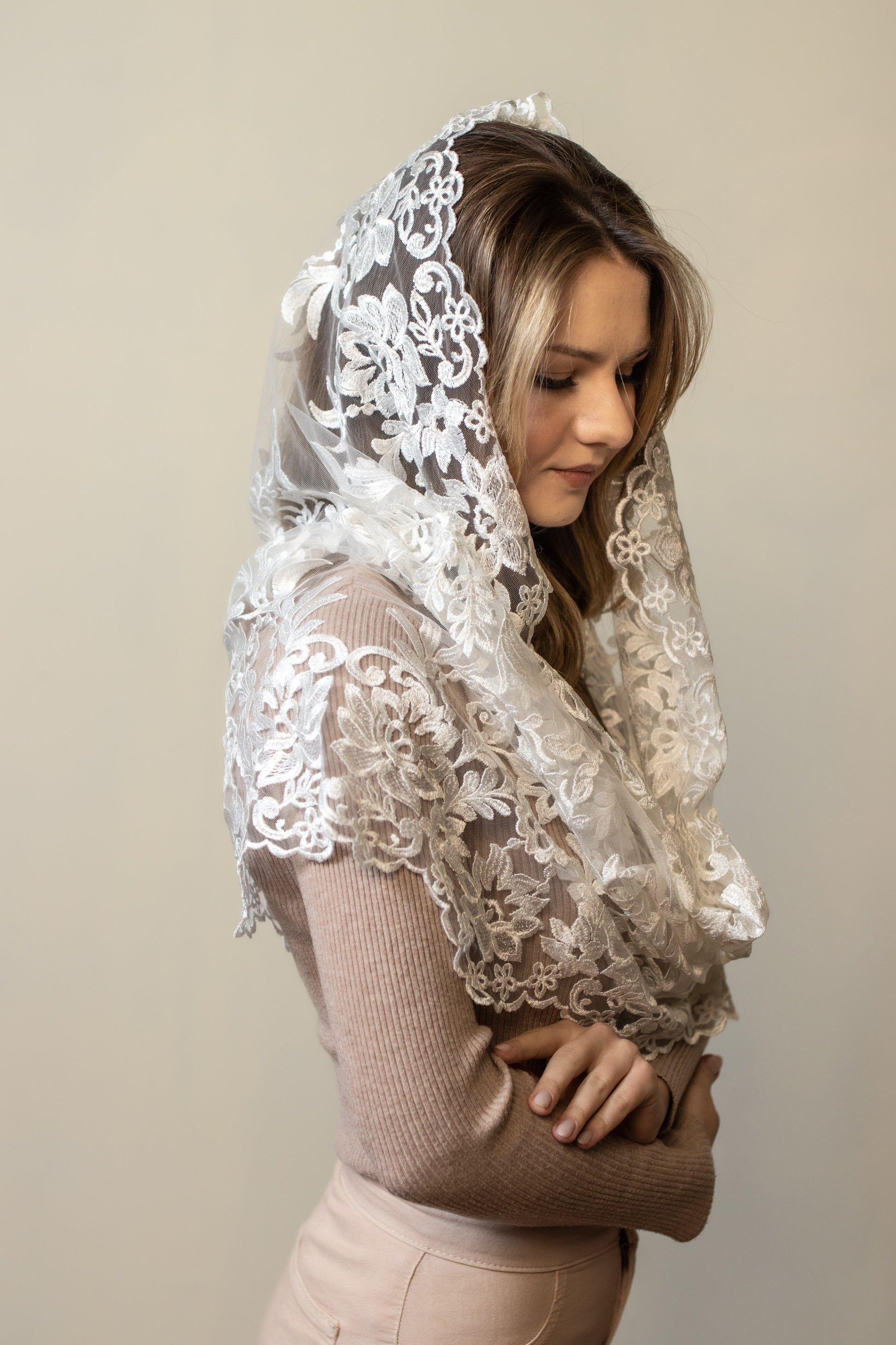 - Long grey Mantilla