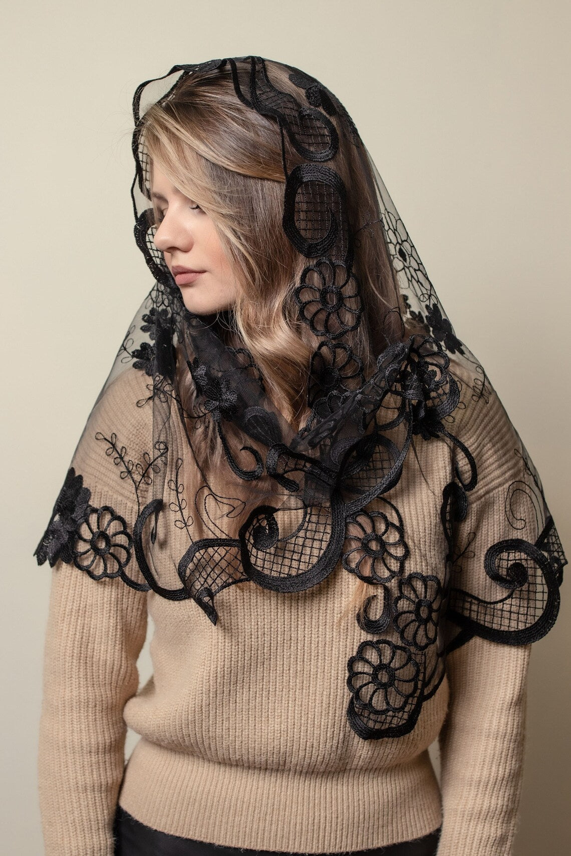 Veil is made from viscose and polyester.