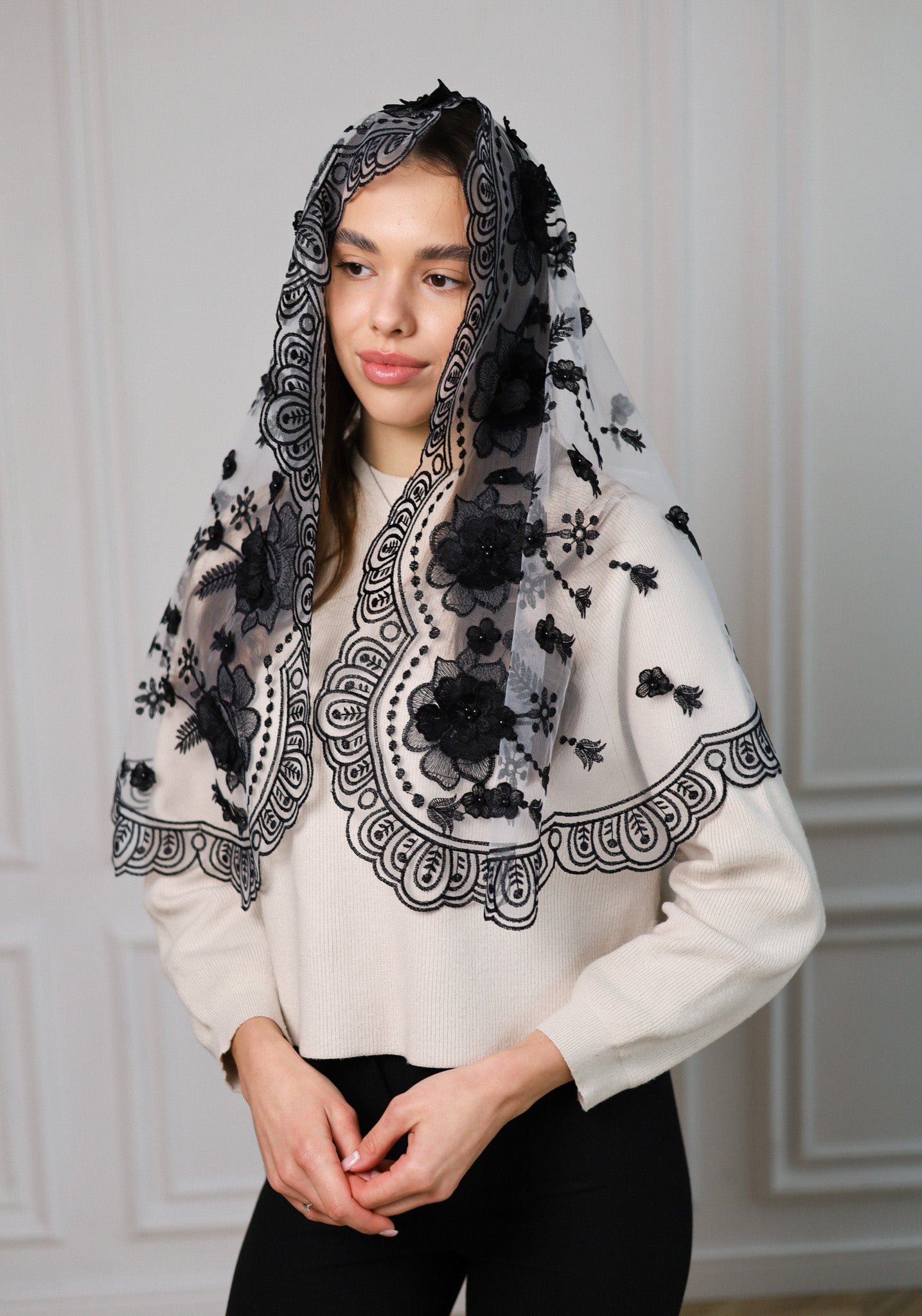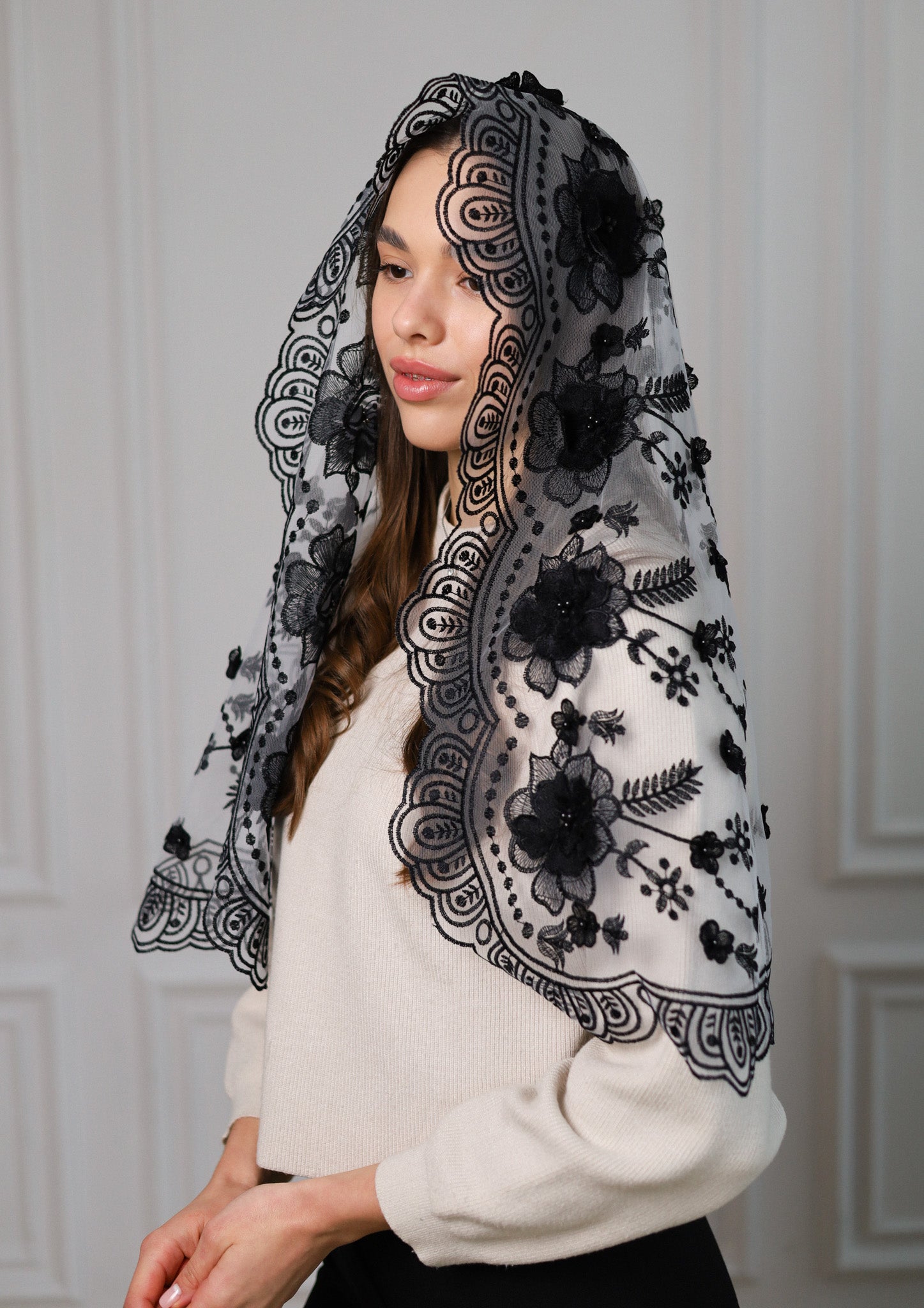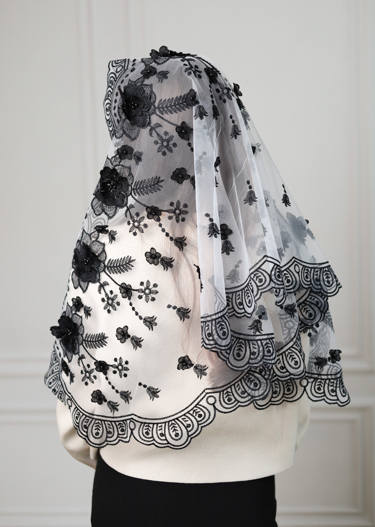 NEW BLACK 3D FLORAL VEIL