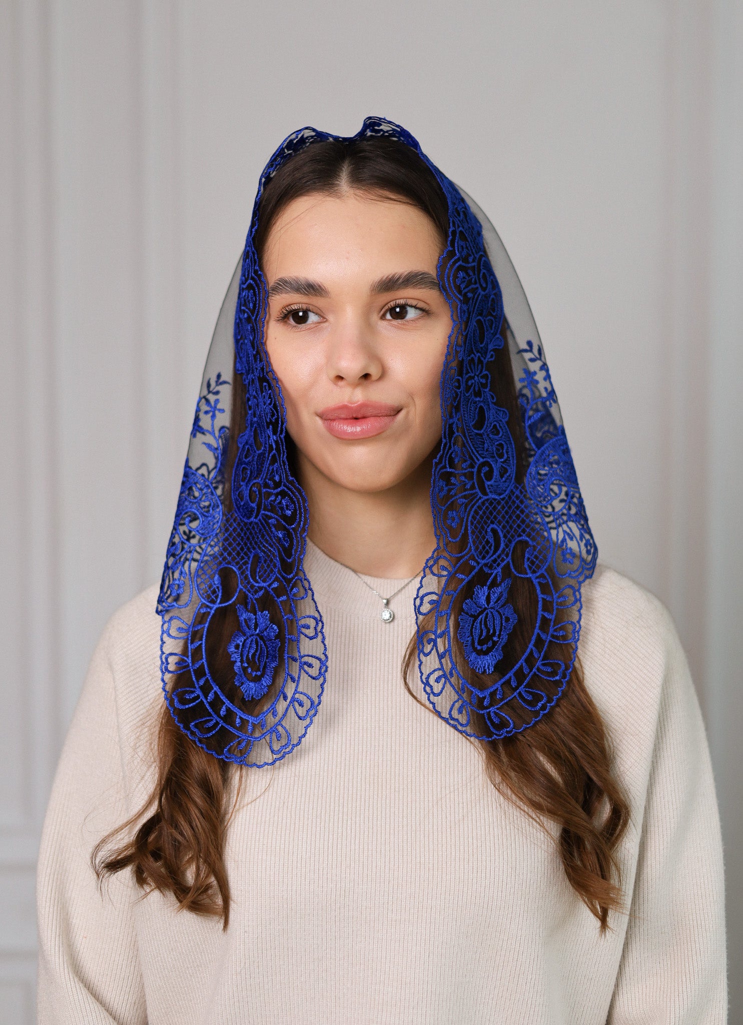 Veil is made from viscose and polyester.